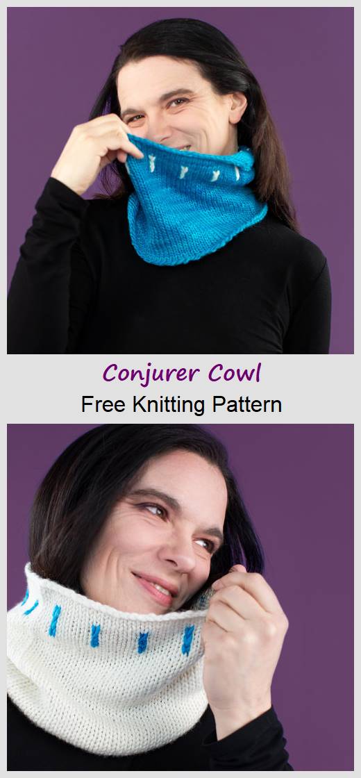 You can download Conjurer Cowl pattern for free on Your Crafts.